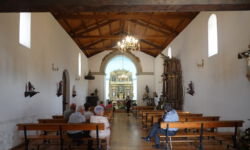 Ich starte wieder sehr früh, da diese Etappe vermutlich sehr schwierig wird. Das Höhenprofil sagt eine lange Steigung über 550 Höhenmeter voraus. Zumindest die Kilometerzahl scheint machbar zu sein. Schon nach den ersten beiden Kilometern liegt auf der linken Seite eine kleine Kapelle, die geöffnet ist und in der Licht brennt. Ich wechsle die Straßenseite und bekomme einen schönen Stempel in meinen Pilgerpass.