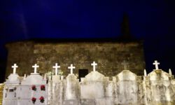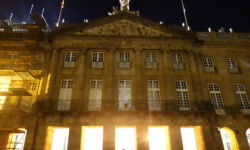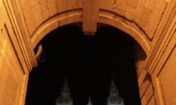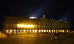 Anschließend fahre ich ziemlich müde mit einem Taxi zurück zum Campingplatz. Dort mache ich eine Pause, bis ich noch einmal nach Santiago fahre, um mit den anderen ein Bier zu trinken. Wir laufen auch noch etwas durch die Stadt und gehen noch einmal zur Kathedrale, die nun beleuchtet ist. Gegenüber der Kathedrale befindet sich das Rathaus. Unter dem Eingang spielt eine traditionelle spanische Band und viele Pilger tanzen dort. Ich höre meinen Namen und sehe Géonne, Remy, Sabrina und einige andere, die mit mir auf dem Camino unterwegs waren. Die Stimmung ist toll, aber auch hier muss ich mich von einigen verabschieden, die ich nicht wiedersehen werde.