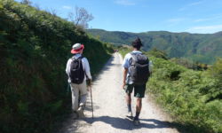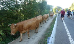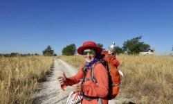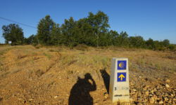 Dann treffe ich einen aus der Schweiz ausgewanderten Kalifornier und eine Niederländerin. Die gehen etwas langsamer, aber sie machen Fotos von mir und so schließe ich mich ihnen eine Zeit lang an. Irgendwann machen sie eine Pause, ich gehe weiter, da ich mich noch fitt fühle. Immer mal wieder treffe ich andere Pilger und wir tauschen uns aus, bis jeder in seinem Tempo weitergeht.