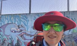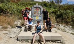 Am Waschmaschinenmonument machen wir ein Gruppenfoto und dann erstellt Tamara eine WhatsApp-Gruppe für uns, damit wir unsere Fotos teilen können und wir besser Verabredungen treffen können. Irgendwann gehe ich ein bisschen schneller, denn wenn es heißer und steiler wird, dann werde ich sowieso langsamer. Ich höre meine Gruppe lange Zeit hinter mir, weil Guillermo, der Spanisch, Deutsch, Englisch und Französisch spricht, immer etwas zu erzählen hat.
