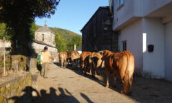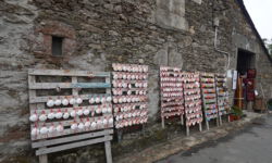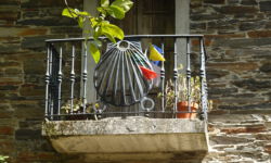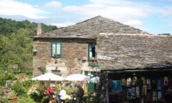 Nach dem üblichen Wäschewaschen in der Albergue Aitzenea gehe ich auf Fotopirsch durchs Dorf. Ich treffe viele Peregrinos und sehe auch Ridge aus Texas wieder. Dann lerne ich noch Loraine und Peter aus Melbourne kennen, die viel umherreisen und auch schon zum Machu Picchu gewandert sind. Wir gehen zusammen in eine Bar auf ein Bier und verabreden uns für den Abend. Heute ist nämlich jährlicher Festivaltag in Triacastela. Zum vierten Mal gibt es für alle Peregrinos ein T-Shirt, eine Urkunde, galizische Würstchen, Fleisch und sogar Wein, alles kostenfrei!