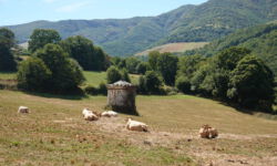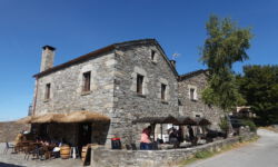 Ich warte schon auf den heftigen Anstieg, der aber bisher noch ausbleibt. Es geht auf sandigen und steinigen Pfaden moderat bergauf. Manchmal geht es an einem Wald entlang oder durch Dörfer mit urigen kleinen Steinhäusern. Manchmal gibt es Biergärten, in denen man ein Kaltgetränk bekommt. Kurz vor dem angesagten Anstieg bestelle ich zwei eiskalte Coke Zero, damit bin ich für den Berg gut gewappnet.