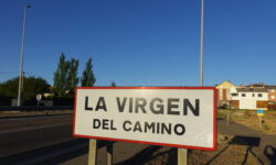 Es geht früh los. Aufstehen um sechs, Losgehen um sieben, denn vorher ist es nicht hell. Es soll heute 33 Grad Celsius werden und ich möchte möglichst wenig in der Hitze laufen. Der erste Blick auf die Straßen von León zeigt, dass die Sonne noch nicht ganz aufgegangen ist. Ich gehe ziemlich schnell, wie immer. Nur der Ruxsack und meine kleine Frühstückstasche, die zusammen etwa neun Kilogramm wiegen, hindern mich daran, wirklich schnell zu gehen. Aber ich gehe so schnell es der Ruxsack zulässt und das sind sechs Kilometer in der ersten Stunde. Ich überhole einige Peregrino , die es langsamer angehen lassen.