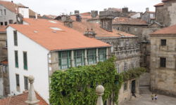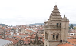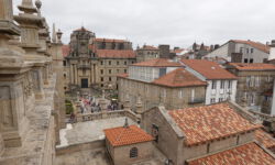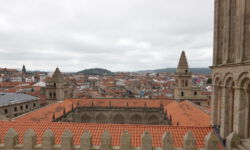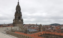 Ich fahre mit dem Fahrrad noch einmal nach Santiago und steige aufs Dach der Kathedrale. Anschließend gehe ich mit Peter, Lorraine und Rich zum Mittagessen und laufe nachher noch ein bisschen durch die Gassen der Stadt.