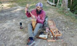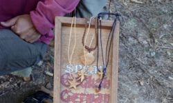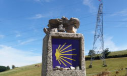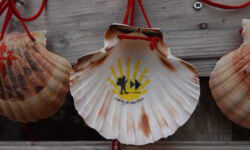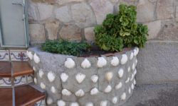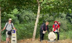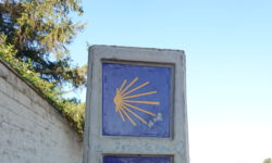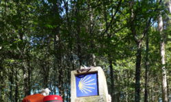 Diese Etappe ist wunderbar zu laufen. Keine besonders schwierigen Steigungen und der Bodenbelag ist aus Asphalt oder auch Lehm. Da wir uns gut unterhalten, verfliegt die Zeit schnell und der Kilometerzähler rast förmlich. Im Wald sitzt plötzlich ein Mann, der aus Holz sehr schöne Muscheln schnitzt. Ich finde sie alle klasse und kaufe ihm eine ab. Dabei stellt sich heraus, dass er Deutscher ist und aus Menden kommt.