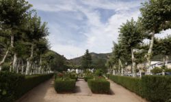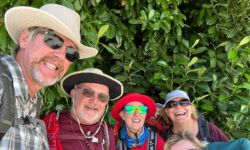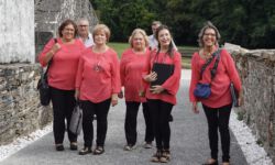 Isa hat eine Kopflampe und leuchtet mir, bis es hell wird. Die anderen laufen etwas langsamer. Nach ungefähr zwei Stunden sind wir in Samos, sehen uns das Kloster an und finden eine Frühstücksbar. Da lassen wir uns nieder und innerhalb von wenigen Minuten kommen viele bekannte Peregrinos um die Ecke. Wir sehen Lorraine und Peter aus Melbourne und Rich aus Texas wieder und brechen mit ihnen zusammen auf. Wir haben uns viel zu erzählen und laufen ungefähr gleich schnell. Und weil es so gut passt, bleiben wir den ganzen Tag zusammen. Mittags finden wir einen bunten Garten, in dem wir eine Trinkpause machen können und kurz vor der Ankunft in Sarria gehen wir zusammen Mittagessen. Wir tauschen Fotos und Kontakte aus und laufen dann weiter nach Sarria.