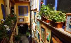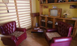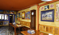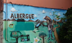 Anschließend geht es in die Albergue San Miguel. Geschafft, 32,5 Kilometer liegen hinter mir. Jetzt freue ich mich über eine Dusche und Füßehochlegen. Der Herbergsvater heißt mich willkommen und erzählt mir, dass er seit über zwanzig Jahren nur Pilger aufnimmt. Er führt mich durch die sehr schöne Herberge, an deren Wänden viele Bilder hängen, die alle von Pilgern gemalt wurden. Ich darf auch eines malen, wenn ich möchte. Die Staffelei und Farben und Leinwände stehen bereit. Ich verzichte aufs Malen und lege mich erst mal aufs Bett. Ich schlafe heute in einem Zimmer mit 14 Betten für Männer und Frauen. Die Duschen sind allerdings getrennt.