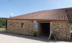 Die Sonne ist noch nicht ganz aufgegangen und es geht erst einmal durch Felder und kleine Orte. In einer Garage sitzt ein Mann der laut ruft, dass man einen Stempel für den Pilgerpass bei ihm bekommen kann. Ich gehe zu ihm und lasse mir einen Stempel geben. Wenn man täglich einen offiziellen Stempel vom Camino in seinem Pilgerpass sammelt, dann bekommt man in Santiago eine Pilgerurkunde ausgestellt, die Compostela. Nebenbei hat er so allerlei anzubieten in seiner Garage. Von Kaffee über Müsliriegel und Obst bis hin zu Muscheln und Wanderstöcken. Ich habe allerdings keinen Bedarf, mein Ruxsack ist schon viel zu schwer.