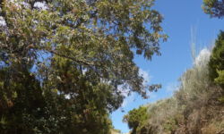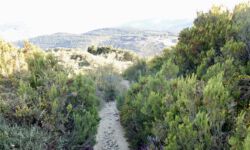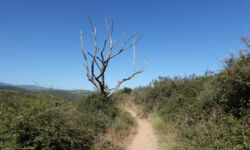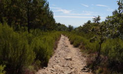 Dann wird es immer steiler, auf dem Boden befinden sich viele Steine und das Wandern ist echt beschwerlich. Die Füße tun sehr weh, die Blase unterm Fuß erst recht. Der Rücken möchte den Ruxsack nicht mehr tragen und die Hüften auch nicht. Ich laufe deutlich langsamer als vorher und sehe ständig auf meine App, die mir sagt, wie weit es noch ist. Es sind noch knapp fünf Kilometer. Das hört sich nicht so schlimm an, aber ich laufe bereis seit vier Stunden und die Sonne brennt schon ganz ordentlich.