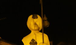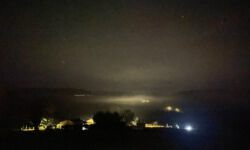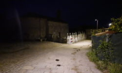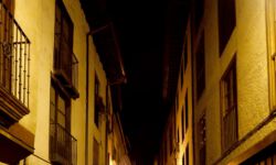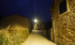 Am Ortsrand geht es an einer Landstraße entlang, plötzlich wird es stockdunkel. Meine Kopflampe habe ich nicht mitgenommen, da ich dachte, dass ich sie nicht benötige. Mein Handy möchte ich nicht als Taschenlampe benutzen, weil der Akku dann zu schnell leer wird. Ich brauche das Handy insbesondere auch zum Tracken der Wanderung. Also gehe ich ein Stück zurück. War wohl doch keine gute Idee, so früh loszulaufen. Keine Minute später kommen mir drei Peregrinos mit Taschenlampen entgegen. Zügigen Schrittes laufen sie in Richtung der Dunkelheit. Spontan drehe ich um und schließe mich ihnen an. Es ist eine Brasilianerin, ein Spanier und ein Franzose. Der Franzose spricht etwas Englisch, aber wir staken nur strammen Schrittes durch die Nacht.