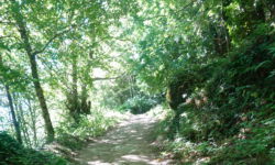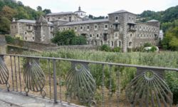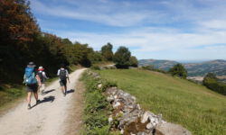 Ich laufe ohne Wanderstöcke, weil ich sie auf den meisten Etappen nicht benötige. Heute wären sie allerdings Gold wert. Als es so steil wird, dass ich mich wie ein Krebs seitwärts bewege, um nicht auszurutschen, bietet mir eine Pilgerin sogar ihren zweiten Stock an. Aber das würde bedeuten, dass ich dann ihr Tempo laufen müsste oder wir irgendeine Verabredung zur Rückgabe treffen müssten. Also winke ich dankbar ab, reiße aber von einem Strauch einen Stock ab, der allerdings nicht richtig stabil ist. Aber es ist besser als nichts, zumindest für diesen grauenvollen Abschnitt. Ich bin heilfroh, dass es nicht regnet und kann mir gar nicht vorstellen, wie man dann heile hier runterkommen würde.