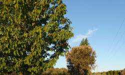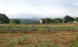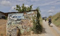 Ich finde meine Flasche in der kleinen Kapelle wieder. Das macht zwei Kilometer plus heute. Nicht schön, aber die Flasche ist es wert. Dann geht es erst einmal eine Zeit lang bergauf durch die Weinberge. Ich probiere Weintrauben, aber sie sind noch recht sauer. Als ich unter den Strommasten hindurchlaufe, knistert es gewaltig und ich hoffe, dass der Strom weiß, wohin er gehört. Natürlich kommen dann wieder kleine Steigungen mit Geröll. Villafranca del Bierzo scheint noch ewig weit weg zu sein, aber irgendwann erreiche ich die Albergue Viñofemita.