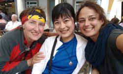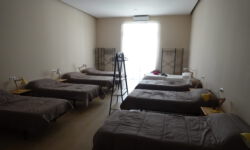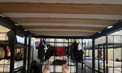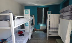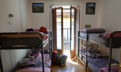 Dort sitzt schon meine Bettnachbarin der letzten Nacht: Mizuki aus Japan. Sie freut sich, mich wiederzusehen und nach der Anmeldung landen wir wieder in den Betten nebeneinander. Dann folgt Loreen von Mallorca. Sie sagt, dass ich heute morgen meine Dose vergessen habe und gibt sie mir in die Hand. Es ist eine Dose Kirchererbsen mit Spinat, die ich nicht mehr geschafft hatte. Außerdem stand sie vor der Tür, um die Frischluft hereinzulassen. Die Tür wäre sonst immer wieder zugeschlagen.