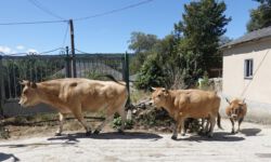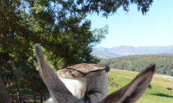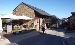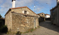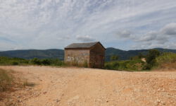 Ich komme durch ein Bergdorf, dort liegt der Hund begraben, nur ein Esel steht irgendwo rum. Und ein paar ältere Dorfbewohner sitzen auf einer Bank. In der kleinen Kapelle bekomme ich einen Pilgerstempel, aber ein Getränk gibt es hier nirgendwo zu kaufen. Ich setze mich auf einen der zahlreich vorhandenen Steine und mache eine kurze Pause. In meinem kleinen Fressbeutel ist noch ein Müsliriegel und ein Multivitaminsaft. Die Italiener von gestern gehen an mir vorbei und fragen wie es mir geht. Nach einem muy bien ziehen sie weiter.