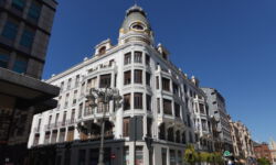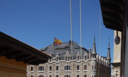 Ich gehe zurück zum Hostel, denn ich habe eine Weinflasche mitgebracht, die ich irgendwo in Spanien gekauft habe, weil auf dem Etikett Palacio de Leon steht. Die kann ich doch heute zur Feier des Tages mal öffnen. Ich sitze im Wohnzimmer und frage mich, wo denn wohl dieser Palast steht. Bevor ich im Internet nachsehe, sehe ich aus dem Fenster und das Gebäude gegenüber sieht doch tatsächlich so aus wie auf der Flasche. Unfassbar! Das ist ja mal ein passender Zufall. Da muss ich doch gleich mal ein schönes Foto von dem Wein vorm Palast machen.