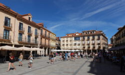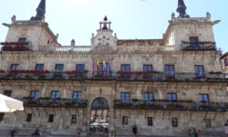 Es geht ab jetzt zumeist bergab bis auf den letzten Anstieg rauf nach Astorga. Mein Hostel wird erst um dreizehn Uhr geöffnet, so dass ich mir am Marktplatz ein Kaltgetränk gönne und die Schuhe ausziehe. Remy und Géonne sitzen bereits da und dann kommt Sabrina aus Cincinnati dazu, mit der ich mich gestern in der Hostelküche lange unterhalten habe. Die drei übernachten leider in einem anderen Hostel, aber wir schmieden schon Pläne, ob wir uns nicht am 23. oder 24. August an der Kathedrale in Santiago treffen können. Wir haben zwar andere Streckenabschnitte geplant, aber vielleicht klappt ja ein Wiedersehen in Santiago.