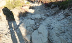 Noch ist der Weg ganz angenehm, es geht ein bisschen bergauf, die losen Steine sind nicht schön, aber ich habe mich ja mittlerweile schon daran gewöhnt, dass der Untergrund für die Füße meistens schmerzhaft ist. Nach ungefähr acht Kilometern geht es dann ordentlich bergab. Erst geht es über Felsen, die aus dem Boden ragen und losen, spitzen Steinen. Dann kommt ein Mix aus Felsen und Geröll und dann wird es immer schlimmer. Der Weg ist zusätzlich total uneben und es geht steil bergab.