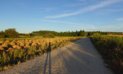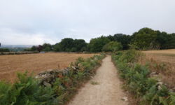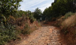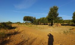 Manchmal ist in der Mitte des schmalen Weges eine große Furche. Jeden Tritt muss ich wohl bedacht setzen, damit ich nicht umknicke oder hinfalle. Das Ansehen der Landschaft beschränkt sich auf die Stopps, die ich für ein Foto mache.