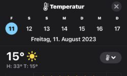 Wir laufen zusammen bis er seine Albergue erreicht. In O Pedrouzo bleiben die meisten für die Nacht. Ich gehe alleine weiter. Mittlerweile ist es zwölf Uhr mittags und die Sonne brennt ganz ordentlich. Ich bin bisher zweiundzwanzig Kilometer gelaufen und nun folgen weitere zwölf. Es wird immer heißer, 36 Grad sind angesagt und die spüre ich mindestens. Es geht zum Glück erst einmal durch einen Wald mit Schatten, dafür bergauf. Dann folgt eine lange Strecke auf heißem Asphalt ohne Schatten. Mir tut alles weh und ich laufe wie ein programmierter Roboter durch die Gegend. Vor lauter Hitze lese ich einen Wegweiser nicht richtig und gerate auf die Calle Complimentario. Das ist meistens ein schöner Umweg, den ich aber heute lieber nicht laufen möchte. Umkehren wäre aber noch blöder, also laufe ich einfach weiter. Am Ende laufe ich einen Kilometer weiter als geplant.