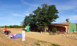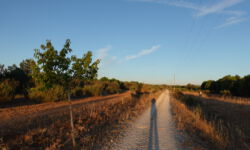 Heute Nacht ist es grauenvoll. Ich spüre die ganze Zeit ALLE meine Knochen. die ich am Leib habe. Es gibt keine gute Liegeposition und ich wache immer auf bei dem Versuch, eine bequemere Position zu finden. Als ich vom Wecker eines Schlafnachbarn wach werde, bemerke ich, dass ich wohl doch irgendwann eingeschlafen bin. Die Schmerzen haben sich etwas beruhigt und die Füße fühlen sich ganz gut an. Ich entdecke eine Blase unterm Fuß, die ich mit einem Blasenpflaster behandele. Um halb acht geht es auf die näxte Etappe. Heute trage ich meinen Wanderrock, da die Etappe nicht so lang ist und meine Beine in der Sonne daher nicht verbrennen können. Außerdem wollte ich gestern nicht mehr waschen.