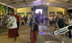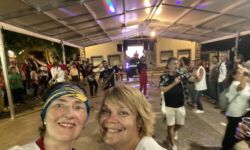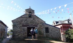 In der Kirche gibt es am frühen Abend eine Pilgermesse und ich treffe sogar den Frauenchor, der sich dafür extra schick gemacht hat. Anschließend spielt auf einer großen Bühne eine Band auf und dann eine weitere, die unten beim Publikum unter einem großen Zeltdach eine Art Volks-Rock-Pop a la Leningrad Cowboys spielt. Die Peregrinos und die Dorfbewohner tanzen wie verrückt und anstelle um spätestens zehn Uhr die Augen zu schließen, geht es bis in die Nacht hinein.