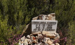Jetzt wird es noch härter. Der Weg wird steiler und die Steine werden nun zu Geröll. Ich muss super aufpassen, wohin ich trete, damit ich nicht umknicke. Ich weiß gar nicht, was mich am meisten stört: Die Sonne, die Schmerzen an den Füßen, dem Rücken, der Hüfte, der steile Weg oder das Geröll. Alles zusammen ist jedenfalls brutal. Es gibt sogar ein Pilgergrab am Rand der Geröllpiste. Kein Wunder, dass diesen Weg nicht alle überleben. Ich schleppe mich langsam bergaufwärts, einige andere Pilger überholen mich, aber sie motivieren mich auch nicht mehr, zügiger zu laufen. Endlich sehe ein paar Häuser, die zu Foncebadón gehören müssen, in dem meine Herberge steht. Nun bin ich ja gleich da. Es zieht sich trotzdem noch hin, weil dieses Dorf am Hang liegt und die Herberge natürlich ganz schön weit oben liegt.
