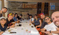 Als ich die Treppe heruntergehe, um fürs Abendessen einzukaufen, sehe ich Remy aus Kalifornien und die Niederländerin Géonne wieder. Sie checken nun auch in diesem Hostel ein. Die wiederum erkennen, neben mir, auch andere Pilger wieder, da sie bereits seit über zwei Wochen unterwegs sind. Beim Abendessen in der Küche kocht zwar jeder für sich, aber wir sitzen dann mit zehn Leuten aus USA, Belgien und den Niederlanden am großen Küchentisch und tauschen Erlebnisse, Reiseziele und alle möglichen Dinge aus. Es ist ein bisschen wie in einer großen Familie zusammenzusitzen. Dass es schon am ersten Tag so schön wird, hatte ich nicht zu hoffen gewagt.