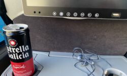 Ich fahre mit einem öffentlichen Bus schon um acht Uhr morgens zum Start meines Jakobsweges nach León. Der Bus benötigt bis dahin sechs Stunden, denn er hält zwischendurch mehrmals an. Neben mir nimmt ein Mann Platz, der nicht bemerkt, dass ich auf seinem Fensterplatz sitze. Vielleicht ist es ihm auch egal. Er begrüßt mich, aber ansonsten sehen wir uns Filme an, denn Bus hat an jedem Sitz einen Bildschirm. Um Punkt zwölf kramt Fernando eine Dose Estrella aus seiner Tasche, er erklärt mir, dass dieses Bier sehr lecker ist und dass er auf den Busfahrten immer Bier mitnimmt, da es auch an den Haltestellen keines gibt. Ich grinse und schwupps habe ich auch eine Dose Estrella auf meinem Platz. Wir trinken also zusammen und Fernando erzählt mir von seiner Familie und dass er mal in Kiel stationiert war bei der Marine. Außer „Guten Tag“ spricht er aber nur Spanisch.