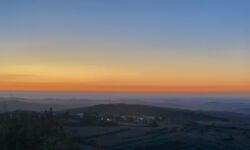 Ich verlasse die Albergue heute morgen als erstes, weil heute meine längste Etappe ansteht. Am Ortsrand wird es nicht nur stockduster sondern auch sehr holperig. Dafür reicht mein Handylicht nicht aus und ich beschließe, auf die näxte Kopflampe zu warten. Die sehe ich schon einer Minute den Berg heraufleuchten. Ich frage, ob ich mitlaufen kann und Jim und Leah haben nichts dagegen. Natürlich frage ich, woher sie kommen. Die Antwort ist: „Texas!“. Das gefällt mir, da war ich schon mal. Wir unterhalten uns, bis sie im näxten Frühstückscafé anhalten. Ich laufe weiter.