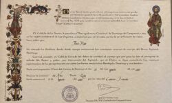 Natürlich möchten wir auch unsere Compostela bekommen und holen sie im Pilgerbüro ab. Dort werden die Stempel im Pilgerpass überprüft, wir bekommen unsere Compostela auf Spanisch und dann noch eine lateinische Variante. Auf der spanischen Compostela steht, dass ich 315 Kilometer von León nach Santiago de Compostela gelaufen bin. Das hört sich ganz schön weit an.