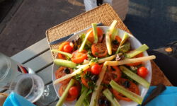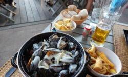Für den letzten Abend wünscht sich Rixa in einem der Restaurants mit Meeresblick Muscheln essen zu gehen. Eine hervorragende Idee! Wir finden einen sehr netten Kellner im La Mariniere, der unser Anliegen versteht und die Muscheln für Rixa speziell zubereiten lässt, so dass sie sie essen kann.