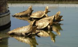 Ich sehe mir zuerst die Gärten an, die schön symmetrisch in einem besonderen Muster angelegt sind. Zwischendurch gibt es Brunnen und Springbrunnen und jede Menge weiße Statuen. Es wird auch klassische Musik gespielt. Bach, Mozart und Beethoven begleiten mich beim Durchschreiten der großen Gartenanlage und ich komme mir selbst schon wie eine Königin vor.