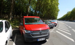 Kurz vor dem Schloss in Versailles gibt es plötzlich einen Tunnel, der ebenfalls Geld kostet. Der kommt so schnell, dass ich gar keine Gelegenheit habe, ihn nicht zu durchfahren, da die Abfahrt unmittelbar am Tunnel ist, ich mich aber auf der linken Spur befinde. Macht ja nix, ich nehme einfach den Tunnel. Gut, dass mein Bus nur 1,92 Meter hoch ist, denn der Tunnel ist nur für Fahrzeuge bis 2 Meter Höhe vorgesehen. Ich fahre problemlos unter einer Schranke her, die als Höhenkontrolle zur Tunneleinfahrt dient. Dann geht es zusammen mit anderen Autos in eine Fahrbahnrinne, an deren Ende sich ein Kassenautomat und eine Schranke mit Ampel befindet.  Ich habe ja die kleine Mautbox und muss noch nicht einmal anhalten. Denke ich jedenfalls!