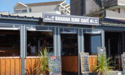 Ich fahre erst einmal mit dem Fahrrad los. Die schönen Fahrradwege durch die Pinienwälder sind wie sonst. Es gibt sogar Fahrradtunnel, kleine beschilderte Kreuzungen und eine Werkzeugstation mit Lufttankstelle. Dann fahre ich durch den Ort und prüfe, ob noch alles so ist wie früher. Zuletzt waren wir 2017 zusammen mit den Kindern hier. Der schöne blaue Surfclub und das geliebte Banana Surf Café sind zum Glück immer noch da. Das Banana Surf Café hat sogar eine Außenterrasse dazu bekommen. Ansonsten hat sich der Ort mächtig vergrößert, mehr Gastronomie, höhere Häuser mit Unterkünften, mehr Fußgängerbereiche, die beiden neuen Strandbuden haben eine Dachterrasse dazu bekommen und mehr Killefittläden. Mmmmh, der einstige Charme hat etwas nachgelassen.