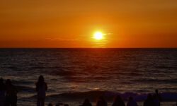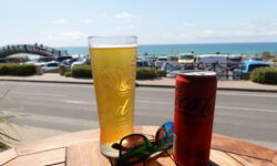 Am Abend treffen wir uns mit Jens, einem meiner Kollegen mit Familie, die auf einem Campingplatz in der Nähe ihren Sommerurlaub verbringen. Wir setzen uns mit einer Flasche Rotwein an den Strand und genießen den Sonnenuntergang. Am nächsten Tag setzen wir uns zuerst wieder auf die Dachterrasse am Beachhouse und bummeln dann durch die Tourilädchen, in denen wir hier und da fündig werden.