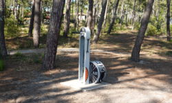 In Valloire-sur-Cisse ist tatsächlich der beschriebene Stellplatz und ich befinde mich direkt an einem kleinen See in der Nähe der Loire. Da stehen auch schon andere Camper und es gibt sogar ein Klohaus und eine Wasserstation. Und es gibt ein Schild mit dem Hinweis, dass man hier ganz kostenlos stehen darf. Wunderbar, da kann ich nun schön schlafen. Um acht Uhr morgens geht es weiter. Ich fahre eine ganze Zeit lang an der schönen Loire entlang und dann über die Autobahn nach Lacanau-Océan.