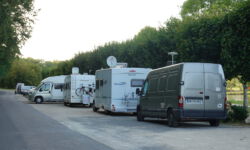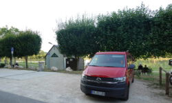 Ich fahre weiter, um einen Schlafplatz für die Nacht zu finden. Mit der praktischen App park4night lässt sich sicher schnell ein Umsonstplatz für die Nacht finden. Ich suche in der Umgebung von Blois ca. 200 Kilometer südlich von Versailles. Da gibt es einen schönen Platz an der Loire, schreibt die App. Ich gebe die Adresse ins Navi ein und lasse mich leiten. Der Platz liegt etwas einsam und ich muss erst durch den engen Ort fahren und an einem Maisfeld entlang. Direkt neben dem Friedhof ist dann Ende mit der geplanten Fahrt zum Stellplatz. Da ist ein Metallzylinder, der aus dem Asphalt ragt. Den kann ich auch nicht umfahren, weil links und rechts dicke Hinkelsteine liegen.