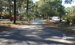 Nun ist Rixa bei mir, wir haben die erste Nacht noch am Hubschrauberlandeplatz verbracht und wechseln jetzt auf den angestammten Campingplatz Les Grands Pins. Der weckt ebenso Erinnerungen an die vielen Familienurlaube, die wir hier verbracht haben. Wir bekommen einen schönen Stellplatz im Halbschatten und stellen fest, dass es auch auf dem Campingplatz einige Veränderungen gegeben hat. Irgendwie ist es einfach rummeliger geworden, es gibt so viele Angebote, dass man den Campingplatz eigentlich gar nicht mehr verlassen muss. Auch dieser hatte früher einfach mehr Atmosphäre.
