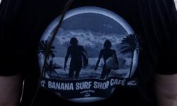 Natürlich darf ein Besuch im Banana Surf Café nicht fehlen. Wir genießen die herrliche Aussicht aufs tiefblaue Meer mit den schönen Wellen und dem frischgezapften Bier auf dem Tisch. Uns fallen sofort die schönen T-Shirts der Bedienungen auf. Ich frage die Chefin, ob man die kaufen kann. Sie zögert etwas, meint dann aber, dass ich mal im Surfshop nebenan fragen soll, da würden vielleicht noch welche sein. Sie hat recht. Wir freuen uns über die schönen Trophäen von unserem Lieblingscafé!