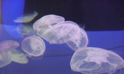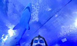 Wir gehen auch ins große Ozeanum, um Haie und andere Meeresbewohner in einer großen Röhre, durch die wir gehen können, zu bewundern. Doch bevor wir zur Röhre gelangen, sehen wir viele Quallenarten in unterschiedlichen Becken, die sich dort hin und her bewegen. Es ist wirklich faszinierend die Tiere unter Wasser zu beobachten.