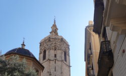 Wir sehen uns die Basilika La Virgen an und auch die Kirche San Nicolás mit ihren besonderen Deckengemälden. Dann klettern wir auf den Turm Torre del Micalet, der zur Kathedrale gehört. Von oben hat man einen wunderbaren Rundumblick auf die ganze Stadt. Wir finden auch einen Supermarkt, der geöffnet hat, so dass wir etwas fürs Abendessen einkaufen können. Das bereiten wir dann im Bus auf dem Campingplatz zu.