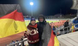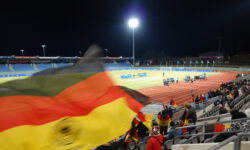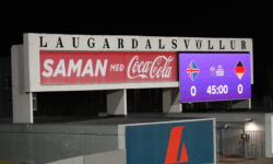 Heute ist ein ganz besonderer Tag, denn heute Abend spielt im Stadion Laugardalsvöllur das deutsche Frauenfußballnationalteam gegen Island. Nach einem Tipp von meinem Bruder habe ich zwei Karten gekauft, denn das Stadion liegt nur drei Kilometer von unserer Unterkunft entfernt, ist also fußläufig zu erreichen. Es ist ein kleines Stadion mit nur ca. 10.000 Sitzplätzen, nicht vergleichbar mit unserem schönen Dortmunder Westfalenstadion. Leider ist die Gegentribühne gar nicht besetzt und auf unserer Seite sitzen auch nur wenige Zuschauer. Der deutsche Block ist vergleichsweise erfreulich gut besucht und wir bekommen bei Betreten des Blocks eine schöne Deutschlandflagge in die Hand gedrückt.