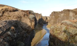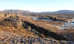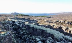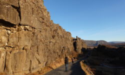 Wir fahren raus aus Reykjavik zum Golden Ring, einer 230 Kilometer langen Strecke, auf der sich viele beeindruckende Sehenswürdigkeiten Islands befinden. Wir müssen nur ab und zu aussteigen und können links und rechts des Weges viele Naturwunder bestaunen. Zuerst fahren wir in den Nationalpark Thingvellir, seit 2004 eine UNESCO Welterbestätte. Hierin befindet sich die Silfra-Spalte, die über Jahrtausende dort entstanden ist, wo die europäische und die nordamerikanische Kontinentalplatte auseinander driften. Die Landschaft sieht surreal aus, da sie mit vielen Gräben durchzogen ist und die Felsen sehr bizarre Formationen bilden.