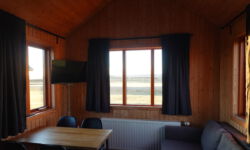 Als wir die Gardinen in unserem Zimmer zur Seite schieben, sehen wir die ganze weiße Pracht, die die Nacht fabriziert hat, im Garten liegen. Schnee sieht ja immer schön aus, wenn man nicht mit dem Auto durchfahren muss. Ich sehe in der App safe travel Iceland nach und finde heraus, dass ein Teilstück unserer 160 Kilometer langen Straße nach Reykjahlid am Myvatn-See wegen Eis und Schnee gesperrt ist. Es gibt eine doppelt so weite Umleitung, aber auch da ist ein Teilstück gesperrt. Sollen wir warten auf den näxten Tag, an dem die Straße eventuell immer noch gesperrt ist? Wir entscheiden uns wieder in Richtung Süden in wärmere Gefilde zu fahren, denn warten wollen wir nicht.