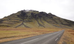 Kurz hinter Akureyri werden die Straßenverhältnisse besser und schließlich liegt kein Schnee mehr auf der Straße. Das Weiß der Berge lässt ebenfalls nach und wir verlassen allmählich den Winter und kommen wieder zurück in den Herbst.