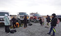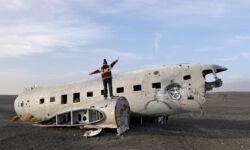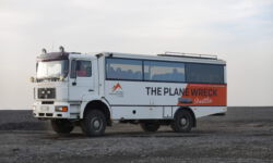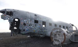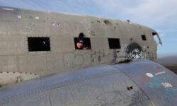 Unser näxtes Ziel ist eine seltsame Sehenswürdigkeit, nämlich ein Flugzeugwrack am schwarzen Sandstrand. 1973 mussten hier zwei US Navy-Piloten, die mit einer Douglas C-117D von Hornafjörður nach Keflavik fliegen wollten, notlanden. Die Vergaser der Motoren wurden durch die kalte Wetterlage vereist, so dass die Motoren schließlich ganz ausfielen. Die beiden Piloten wurden gerettet, das Flugzeug von der US Army ausgeschlachtet und das Wrack ließ man einfach dort liegen. Seit dem ist es eine Touristenattraktion. Wir werden mit einem Allrad Truck von einem Parkplatz zum Flugzeug gebracht und dürfen uns umsehen. Irgendwie schräg.