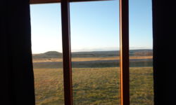 Heute wohnen wir in einem Cottage. Jedenfalls habe ich es als solches gebucht. Es gibt keine Rezeption, alle Informationen zum Einlass ins Haus sind mir schon vorher elektronisch zugestellt worden. Das Cottage liegt einsam in der Landschaft und wir würden es eher als Tinyhaus bezeichnen, aber es ist gut ausgestattet mit Küche, Bett, Wohnzimmer und Eßzimmer zusammen in einem Raum. Zum Glück haben wir alles dabei. Heute Abend gibt es mal wieder Toastscheiben mit Käse, dazu Rotwein und Bier. Warm ist es auch im Häuschen, also alles bestens. Und wir haben einen guten Blick in den Himmel mit einem Fenster nach Westen und eins nach Norden.