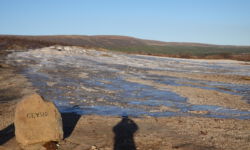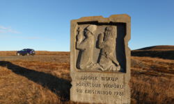 Näxter Stopp ist am Gullsteinn. Bauer Kodran glaubte, dass dort einmal ein Schutzgeist gewohnt hat, bis der Stein beim Gesang von Bischof Fridrekur zersprang. Seit 1981 gibt es da einen Gedenkstein an die Missionare Porvaldur und Fridrekur. Naja.