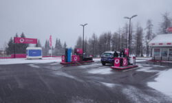 Beim Tanken sehe ich noch einmal in der App nach. Diese wird laufend aktualisiert und zeigt, auf welchen Abschnitten der Ringstraße welche Straßenbedingungen herrschen. Nun ist das zuvor gesperrte Teilstück wieder freigegeben, allerdings müssen wir mit Schnee oder Schneematsch auf der Straße rechnen. Nun können die Spikes mal zeigen, wozu sie gut sind. Wir fahren also doch wie geplant weiter nach Norden.