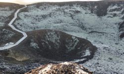 Wir verlassen unser kleines Blockhäuschen und fahren in Richtung Reykjavik. Wir sehen noch einmal schneebedeckte Berge bevor wir durch eine eher karge Landschaft fahren. Am Grabrok Krater halten wir an und laufen die Treppen hoch, bis wir in den Krater sehen können. Er soll 3400 Jahre alt sein. Nebenan steht der kleine Bruder Litla Grabrok. Das ganze Gebiet drumherum besteht aus herumliegender Lava. Wir laufen oben am Kraterrand entlang und fliegen fast weg, weil es da oben extrem windig ist. Klaus muss seine Locken festhalten, damit sie nicht weggepustet werden.
